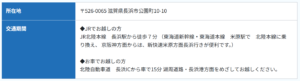 交通機関:JR琵琶湖線(北陸本線)長浜駅から徒歩7分 高速道路北陸自動車道 長浜ICから車で15分